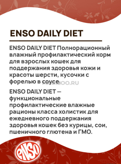 ENSO DAILY DIET корм для взрослых кошек для кожи и шерсти, кусочки в соусе форель 85 гр