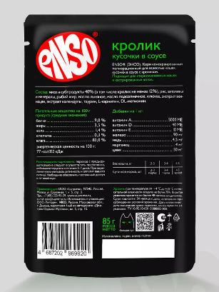 По своей природе кошки достаточно избирательны в еде, это практически запрограммировано в их ДНК. Благодаря сбалансированному составу и натуральным ингредиентам, нежные мясные кусочки ENSO в аппетитном соусе очаруют кошек уже при первом знакомстве с кормом.