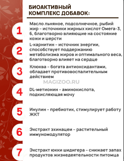 Содержит волокна подорожника – источник растворимой клетчатки, способствующей выводу шерстяных комочков естественным путем.