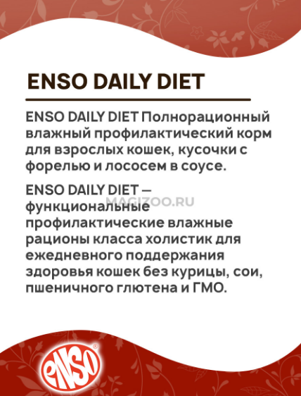 ENSO DAILY DIET — функциональные профилактические влажные рационы класса холистик для ежедневного поддержания здоровья кошек без курицы, сои, пшеничного глютена и ГМО.