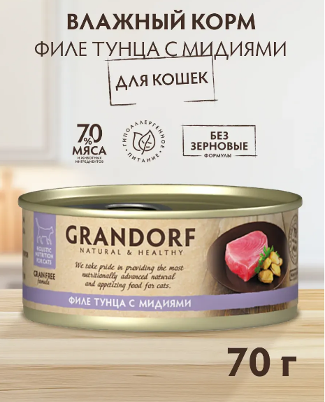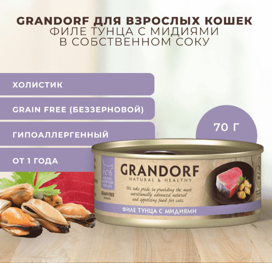 GRANDORF CAT Филе тунца с мидиями 70 гр