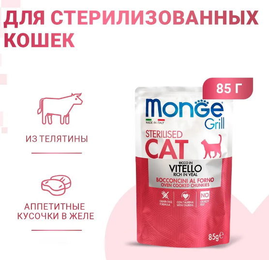 Monge Cat Grill для стерилизованных кошек в желе с телятиной 85г