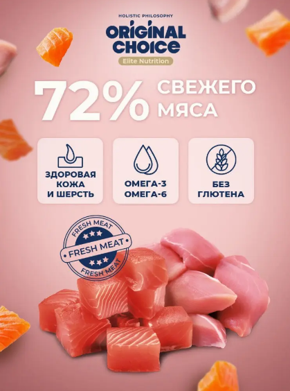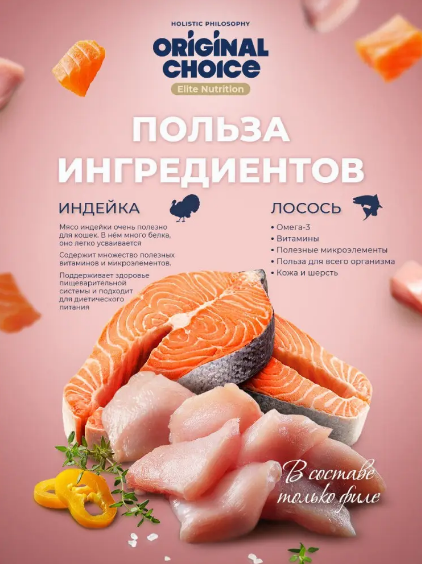 ORIGINALCHOICE Индейка с лососем для кошек 100г