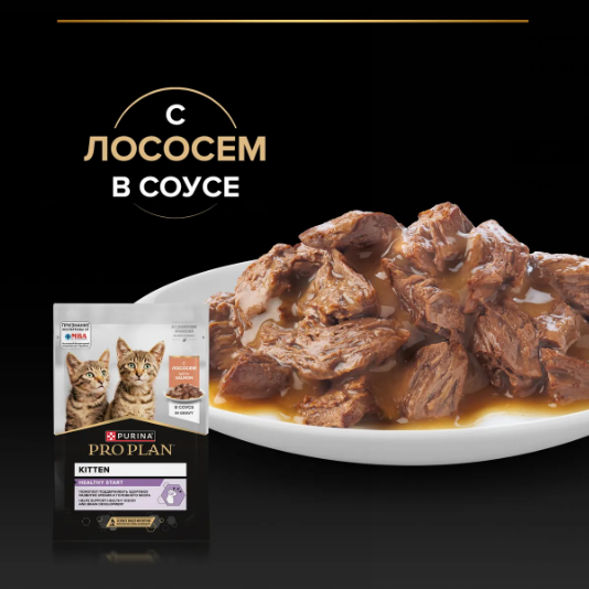 Новорожденные котята быстро растут, и вскоре им становится недостаточно лишь материнского молока для полноценного питания. Для прикорма им подойдет специальный корм с легкоусвояемой формулой и повышенным содержанием основных питательных веществ, витаминов и минералов, необходимых для успешного роста и развития всех систем организма. При отлучении от грудного вскармливания прикорм вводят постепенно, а длительность перехода и требуемое количество корма могут отличаться для каждого котенка. Команда квалифицированных ветеринарных специалистов разработала влажный корм для котят PRO PLAN® HEALTHY START® с лососем. Этот полнорационный корм предназначен для здорового развития котенка в возрасте до 12 месяцев, а также подходит для кормления беременных и кормящих кошек. • Помогает поддерживать здоровое развитие зрения и головного мозга. • Способствует здоровому росту костей и мускулатуры. • Содержит необходимые питательные вещества, адаптированные к фазам роста. Рационы PRO PLAN® разработаны на основе современных научных достижений и рекомендованы ветеринарными специалистами*.