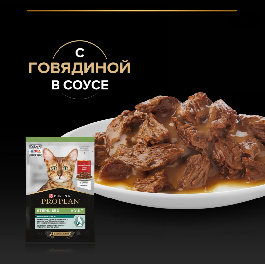 Влажный корм для кошек PURINA PRO PLAN Sterilised MAINTENANCE (Поддержание естественной защиты организма) — это полюбившийся PRO PLAN NUTRISAVOUR STERILISED с новым названием, но с прежним составом и качеством.