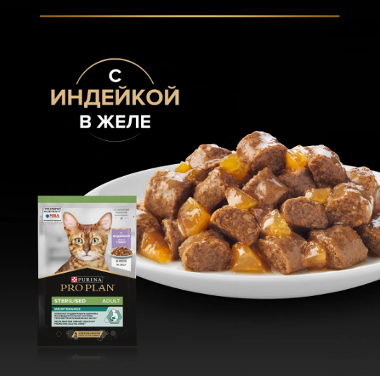 Команда квалифицированных ветеринарных специалистов разработала влажный корм PURINA PRO PLAN Adult STERILISED MAINTENANCE для взрослых стерилизованных кошек. Этот полнорационный корм для кошек с индейкой подходит для ежедневного кормления и полностью отвечает индивидуальным потребностям организма стерилизованных питомцев.