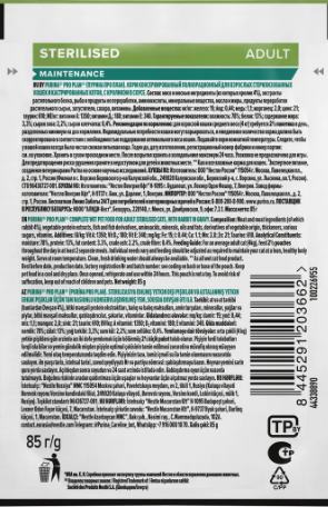 Стерилизация кошки или кастрация кота ведет к серьезной гормональной перестройке организма, из-за чего повышается риск ожирения и развития проблем с мочевыделительной системой. Таким питомцам требуется особое питание с пониженным содержанием жиров, специально подобранным минеральным составом и привлекательным вкусом. Команда квалифицированных ветеринарных специалистов разработала влажный корм для стерилизованных кошек PRO PLAN® Sterilised MAINTENANCE с кроликом. Этот полнорационный корм для кошек разработан с учетом их потребностей в высококачественном белке, а также витаминах и минералах, необходимых для нормального функционирования организма. • Помогает поддерживать здоровье мочевыделительной системы, способствуя разбавлению мочи*. • Способствует сохранению оптимального веса у взрослых стерилизованных кошек и кастрированных котов. • Помогает поддерживать естественную защиту организма благодаря антиоксидантам, таким как витамин Е.