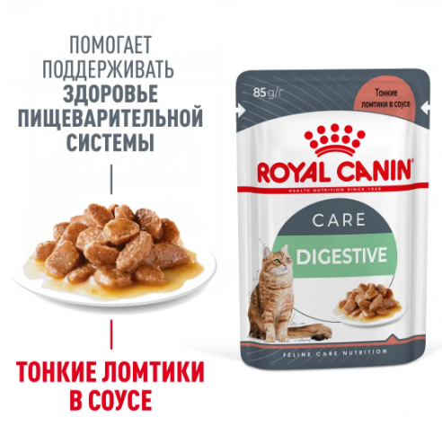 ROYAL CANIN DIGESTIVE CARE - точно сбалансированная формула, поддерживающая баланс флоры кишечника и способствующая нормализации стула.