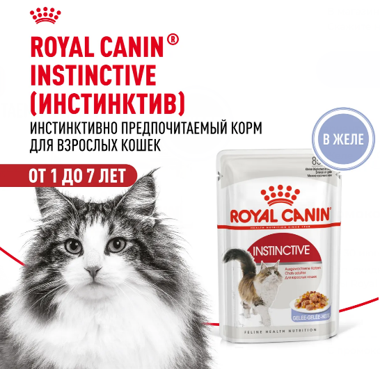 ROYAL CANIN Instinctive в желе разработан в соответствии с макронутриентным профилем, инстинктивно предпочитаемым взрослыми кошками. Тщательно отобранные ингредиенты обеспечивают высокую вкусовую привлекательность этого продукта.