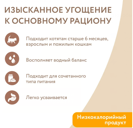 Прекрасно подходит привередливым кошкам, а также питомцам со сниженным потреблением воды.