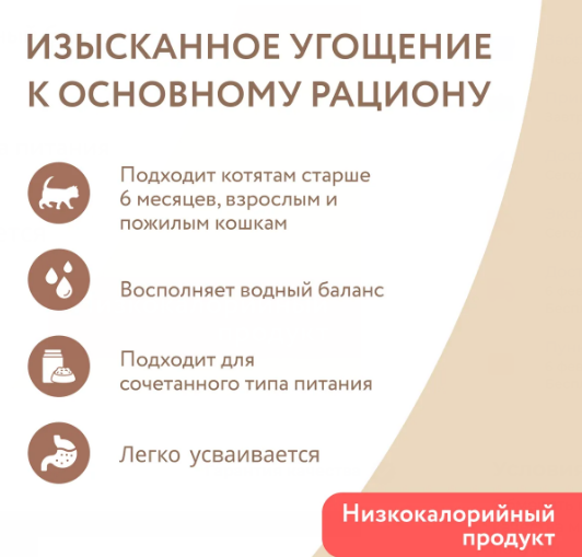 Прекрасно подходит привередливым кошкам, а также питомцам со сниженным потреблением воды.