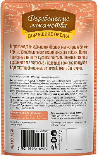 Деревенские лакомства конс. д/кошек Лосось с крабом в нежном желе 70 гр.