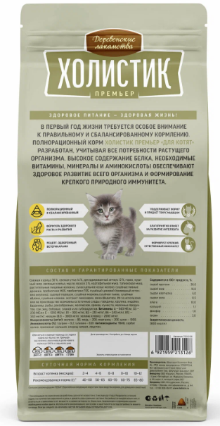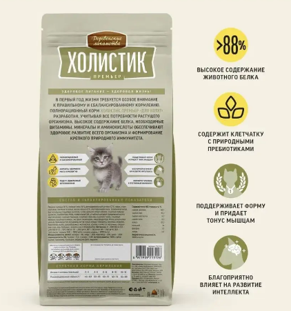 Первый год жизни требует особого внимания к правильному и сбалансированному кормлению. Полнорационный корм Холистик Премьер «Для котят» разработан учитывая все потребности растущего организма. Высокое содержание белка, необходимые витамины, минералы и аминокислоты обеспечивают здоровое развитие всего организма и формирование крепкого природного иммунитета.