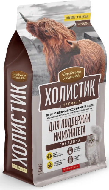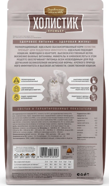 Сбалансированный, натуральный, полнорационный корм «Деревенские лакомства Холистик Премьер» обеспечивает питомцев всем необходимым для поддержания здоровья на каждом этапе жизни. В уникальных рецептах учтены не только вкусовые предпочтения кошек, но и их физиологические особенности, уровень активности и возраст.