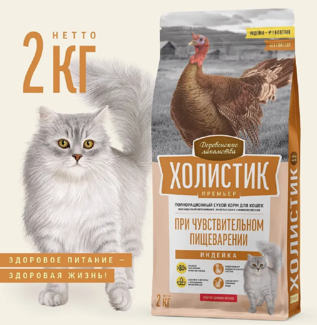 Сбалансированный, натуральный, полнорационный корм «Деревенские лакомства Холистик Премьер» обеспечивает питомцев всем необходимым для поддержания здоровья на каждом этапе жизни. Уникальные рецепты учитывают не только вкусовые предпочтения кошек, но и их физиологические особенности, уровень активности и возраст.