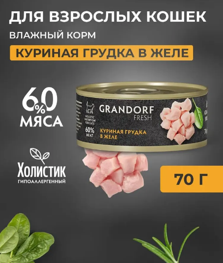 Консервы для кошек GRANDORF FRESH Куриная грудка в желе 70 г