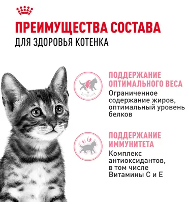 Уже через 48 часов после стерилизации у кошки может существенно возрасти аппетит, что может привести к набору избыточного веса. Умеренная калорийность продукта Киттен стерилайзд позволяет избежать набора избыточного веса, а оптимальное количество белков и минеральных веществ поддерживает здоровый рост котенка.