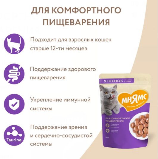 Мнямс влажный корм для кошек с ягнёнком 85г