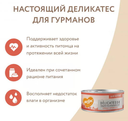Мнямс Курица с брокколи для котят "Паштет по-итальянски" 100 г