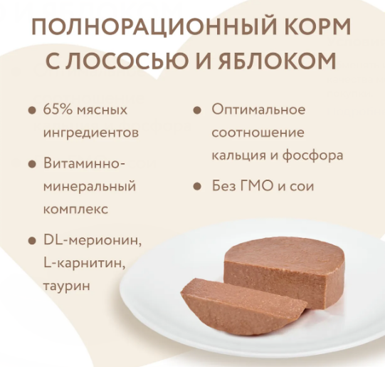 Полнорационный сбалансированный влажный корм с лососем и яблоком для стерилизованных кошек и кастрированных котов старше 12 месяцев, созданный по мотивам блюд высокой кухни. "Паштет по-норвежски" содержит высокое количество животного белка (65%), лосось, яблоко, клюкву, витамины и минералы, DL-метионин, L-карнитин, обеспечивающие контроль веса и снижающие риск развития мочекаменной болезни, а также незаменимую аминокислоту - таурин.