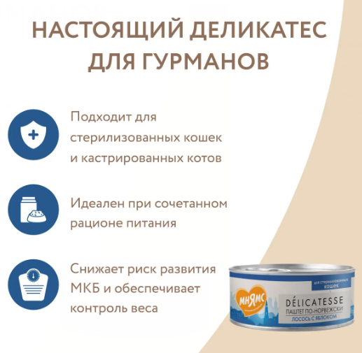 Мнямс Лосось с яблоком для стерилизованных кошек "Паштет по-норвежски" 100 г