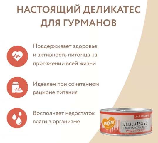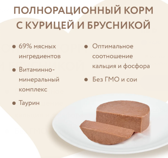 Полнорационный сбалансированный влажный корм с курицей и брусникой для кошек старше 12 месяцев, созданный по мотивам блюд высокой кухни. "Паштет по-голландски" содержит высокое количество животного белка (69%), бруснику, таурин, а также все необходимые витамины и минералы для поддержания здоровья и активности кошки на протяжении всей ее жизни.