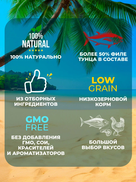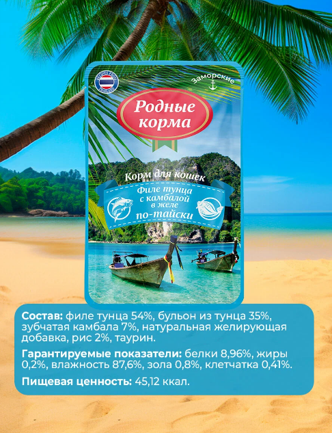 Родные корма "Заморские" - побалуйте своего любимца вкусными изысками из разных уголков мира. Линейка влажных кормов "Заморские" из теплого Таиланда, в основе которых отборные морепродукты: аппетитный тунец, нежный лосось, сочный сибас и ароматные креветки, которые придутся по вкусу даже самым привередливым гурманам!