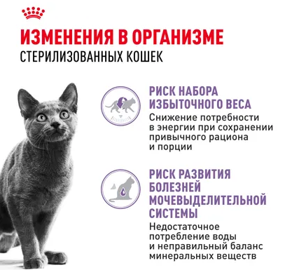 ROYAL CANIN® STERILISED (СТЕРИЛАЙЗД) содержит ограниченное количество жиров и оптимальный уровень белков для поддержания оптимального веса.