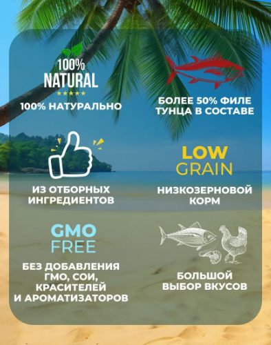 Влажный корм для кошек паучи "Заморские"— это нежные кусочки филе тунца и лосося в аппетитном соусе, приготовленные по традиционному тайскому рецепту. Ваш кот будет в восторге от этого неповторимого сочетания вкусов и ароматов!
