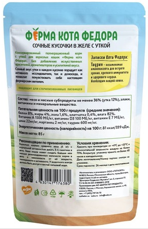 Влажный корм с Фермы кота Фёдора - это сбалансированный рацион, который обязательно понравится вашей кошке.