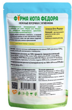 Ферма кота Фёдора нежные кусочки с ягненком для котят 85г