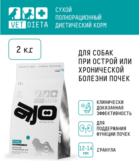 AJO Vet Dieta Renal 2 кг для собак при болезни почек