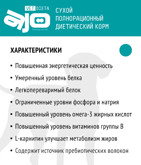 AJO Vet Dieta Renal (АЙО ветеринарная диета Ренал) Корм сухой полнорационный диетический для собак при хронической болезни почек