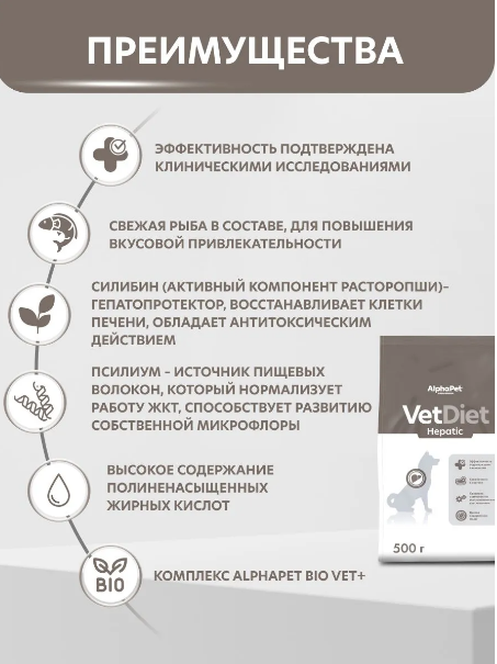 ALPHAPET VET DIET HEPATIC 500 гр – лечебный корм для собак при заболеваниях печени