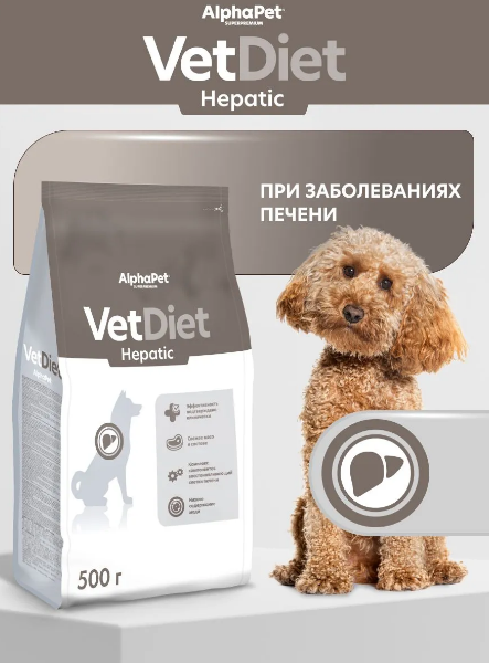 ALPHAPET VET DIET Hepatic для собак всех пород, при заболеваниях печени, 0,5 кг