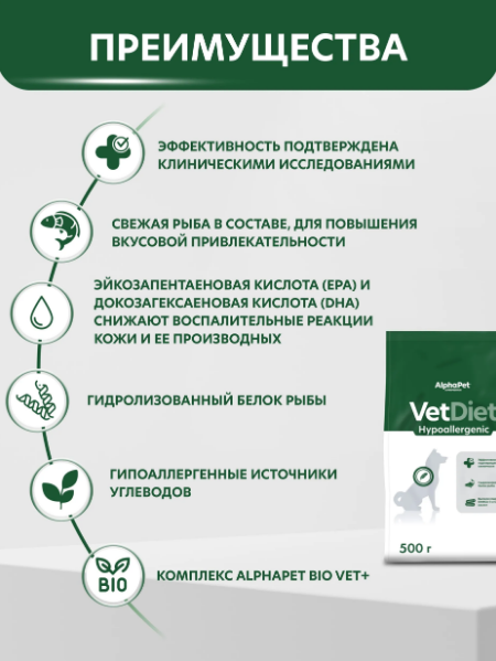 ALPHAPET VET DIET Hypoallergenic для собак всех пород при пищевой аллергии, 0,5 кг