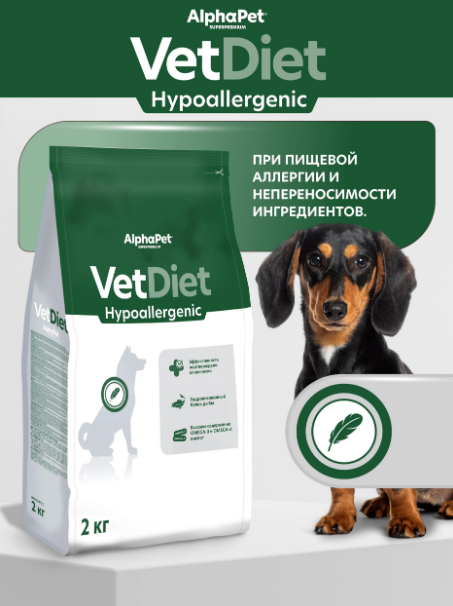 ALPHAPET VET DIET Hypoallergenic для собак всех пород при пищевой аллергии, 2 кг