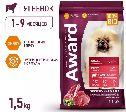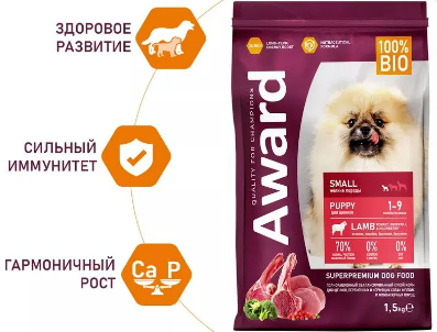 AWARD Puppy для мелких пород с ягненком и индейкой 1,5кг