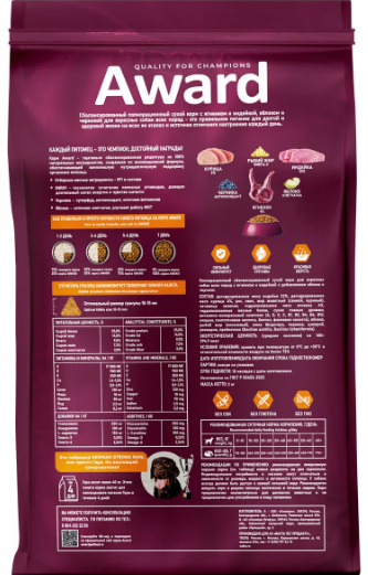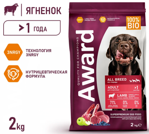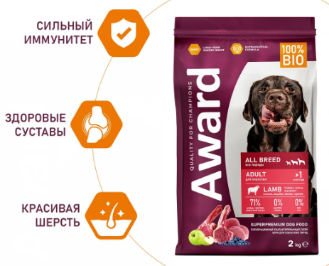 AWARD Puppy для щенков собак всех пород с ягненком и индейкой 2кг