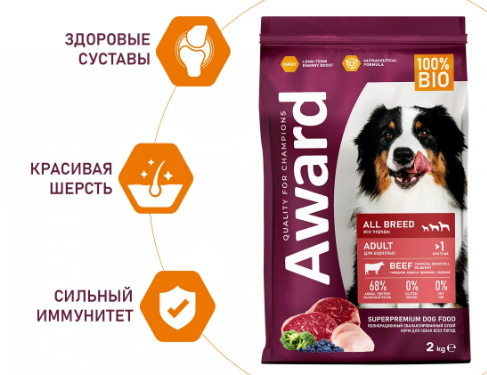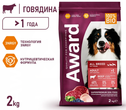 AWARD для взрослых собак всех пород с говядиной и курицей 2кг