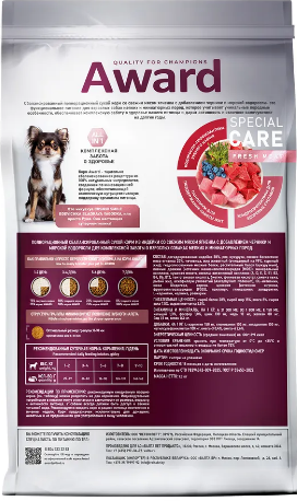 Сухой корм AWARD SPECIAL CARE Toy Breed Support для взрослых собак мелких и миниатюрных пород со свежим мясом ягненка 1,5кг