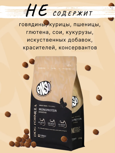 ENSO Monoprotein сух.корм для взр. сред/круп собак индейка/шпинат 2,5 кг