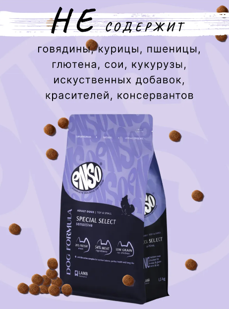 ENSO Dog Formula Special select сухой полнорационный корм для взрослых собак мелких и миниатюрных пород со свежим ягненком с добавлением томата