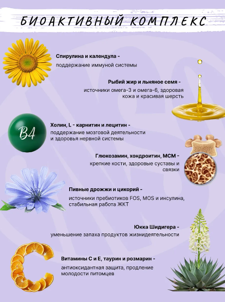 Каждый рацион линейки обогащен БИОАКТИВНЫМ комплексом нутриентов ENSO Formula, необходимых организму кошки для сохранения здоровья и продолжительности активной жизни: