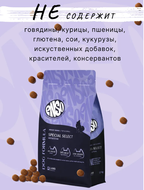ENSO Dog Formula Special select сухой полнорационный корм для взрослых собак мелких и миниатюрных пород со свежим ягненком с добавлением томата