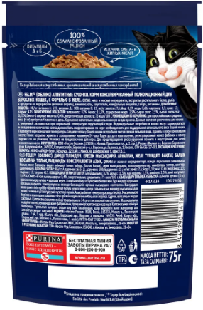 Felix 75 г пауч консервы для кошек аппетитные кусочки с форель