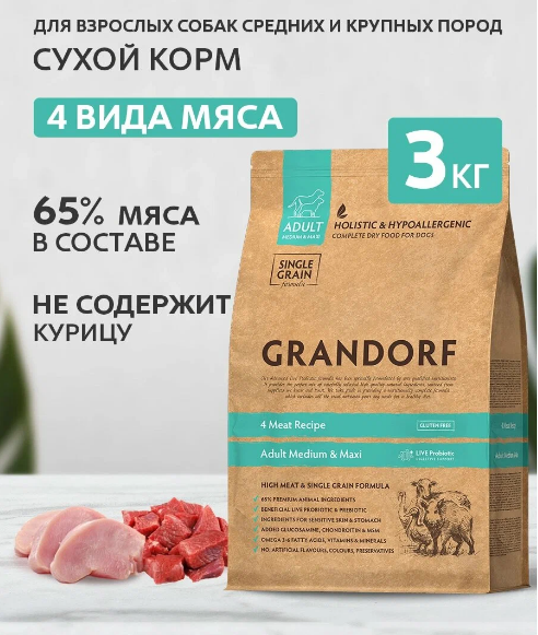 GRANDORF DOG MEDIUM 4 Мяса/Рис 3кг