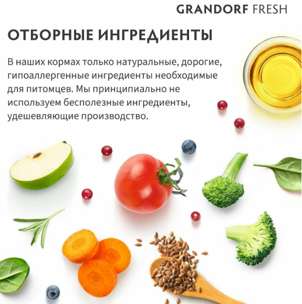 GRANDORF Fresh Dog Adult Mini Turkey&Sweet Polato (Свеж. мясо инд. с бат. для собак мел. пор.) 1 кг