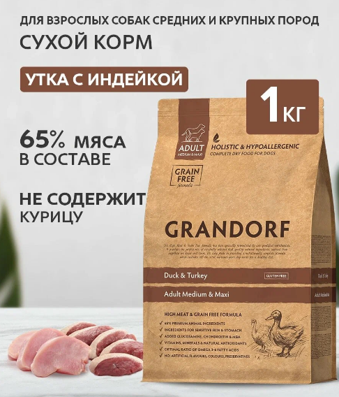GRANDORF DOG MEDIUM Утка&Индейка 1 кг