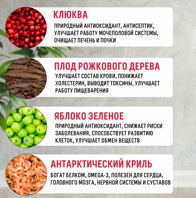 Тщательно отобранные, натуральные гипоаллергенные ингредиенты, помогают предотвратить аллергические реакции и пищевую непереносимость, обеспечивая иммунное и пищеварительное здоровье.